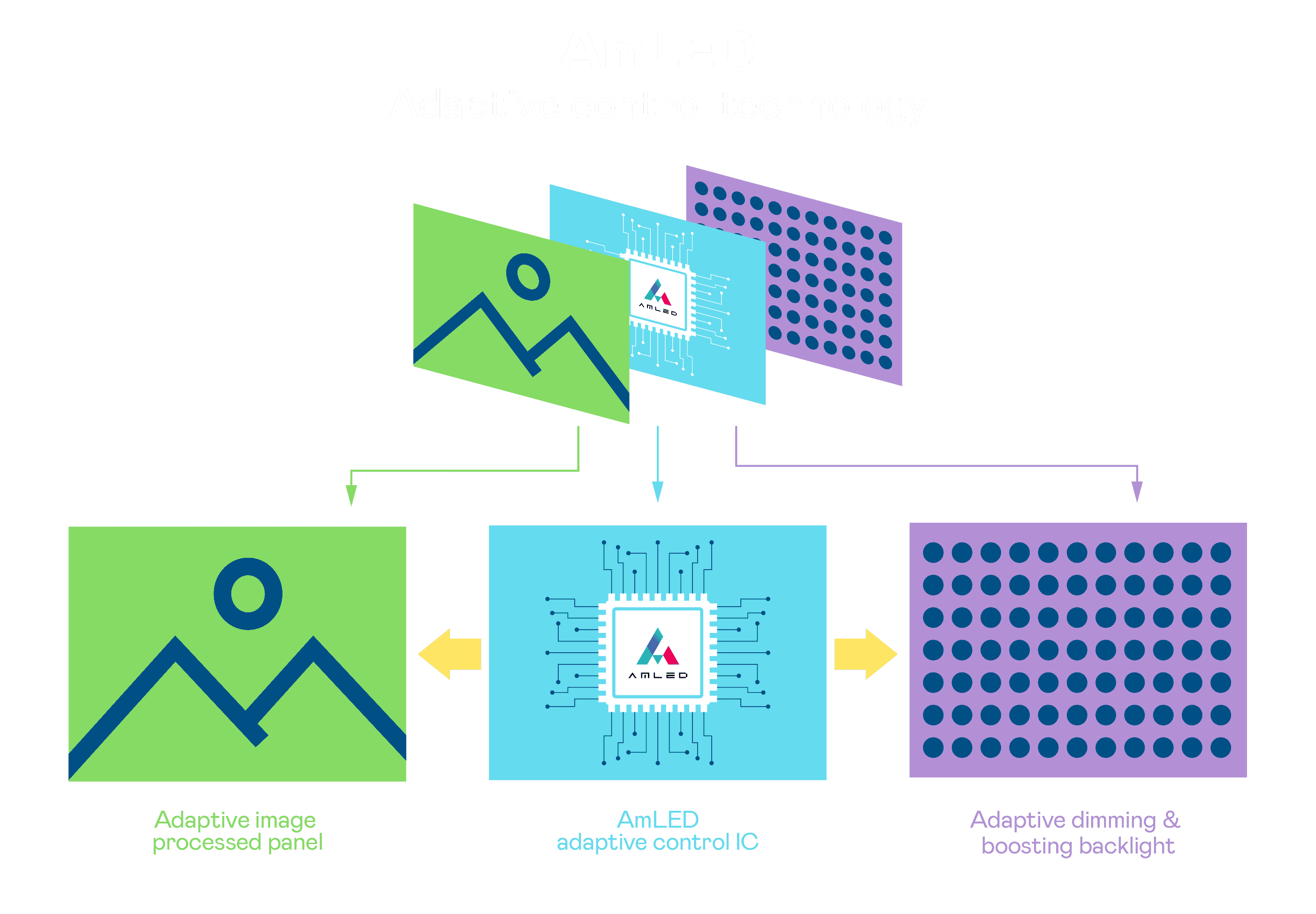 AmLED 具备更省电与低蓝光特性。。。与一般的 LED 背光显示技术相比,,,,由于 AmLED 常时处于局部调光状态,,,,其功耗仅有前者的 50% 左右,,,,同时 AmLED 还具备低蓝光特性,,,,满足长时间使用的护眼需求。。。